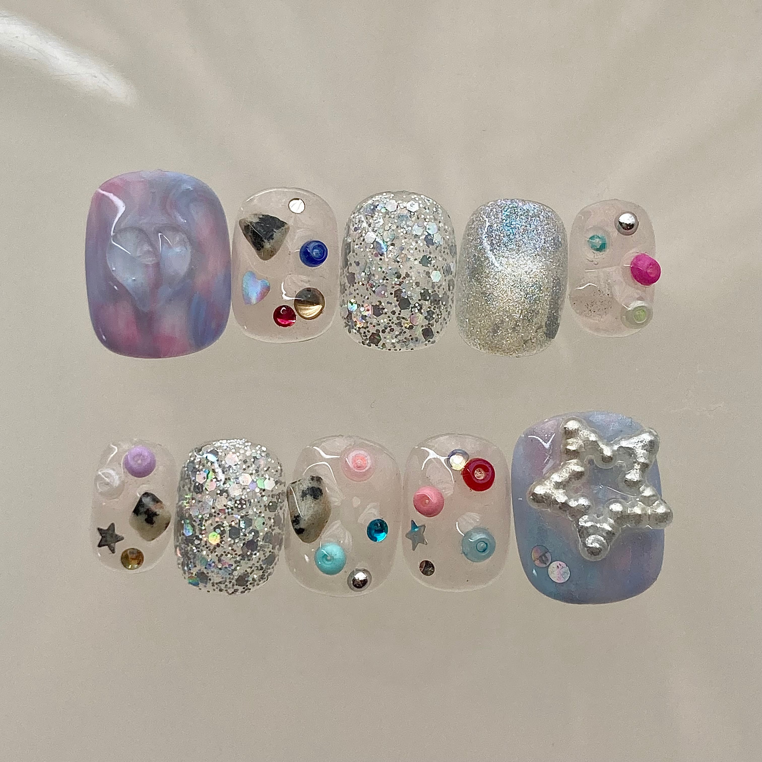 twinkle|韓国ネイル 韓国風ネイル ネイルチップ ブルーネイル ニュアンスネイル リボンネイル ハートネイル キラキラネイル ビーズネイル マグネットネイル 天然石ネイル