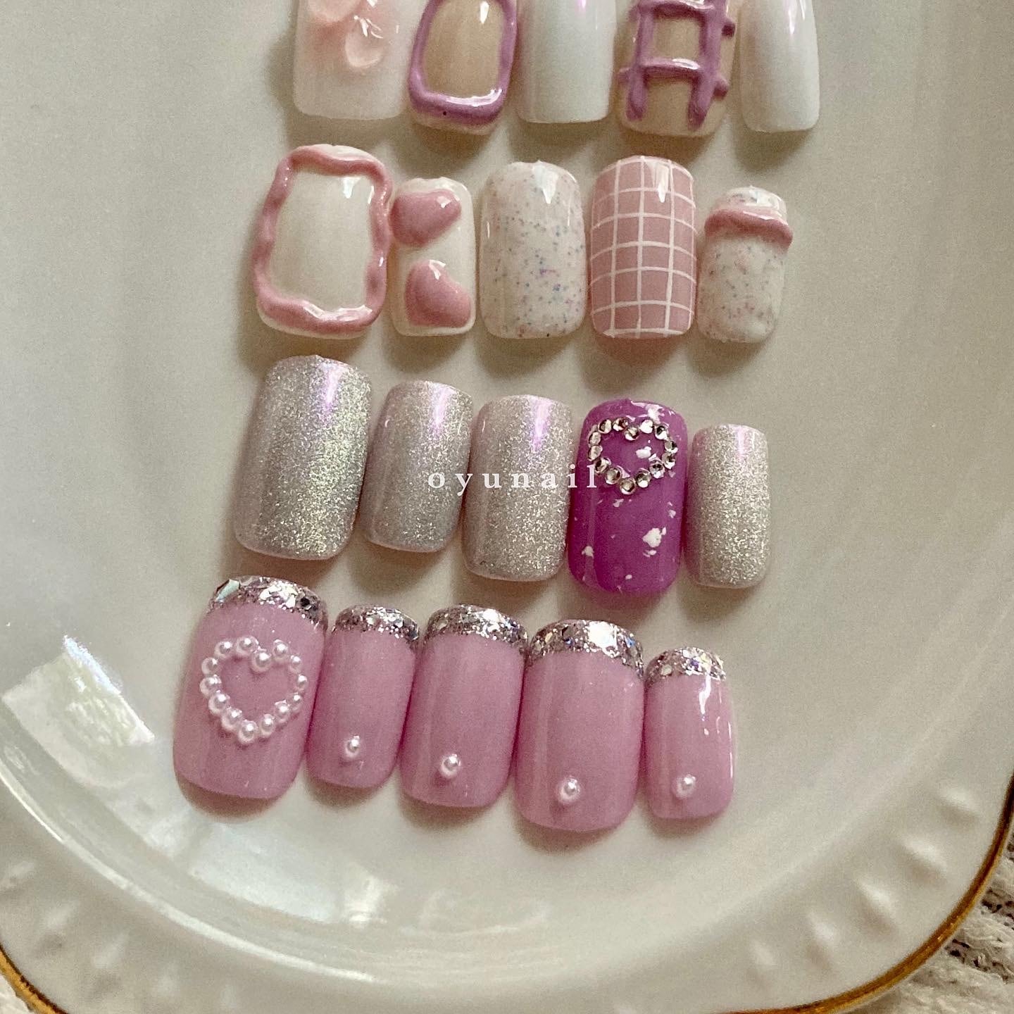 ⚪︎ 片手ずつデザインを選択 ⚪︎ ネイルチップ 韓国ネイル 韓国風ネイル ガーリーネイル ワンホンネイル ピンクネイル ホワイトネイル ぷっくりネイル 個性派ネイル ホロ囲みネイル チークネイル フレンチネイル マグネットネイル