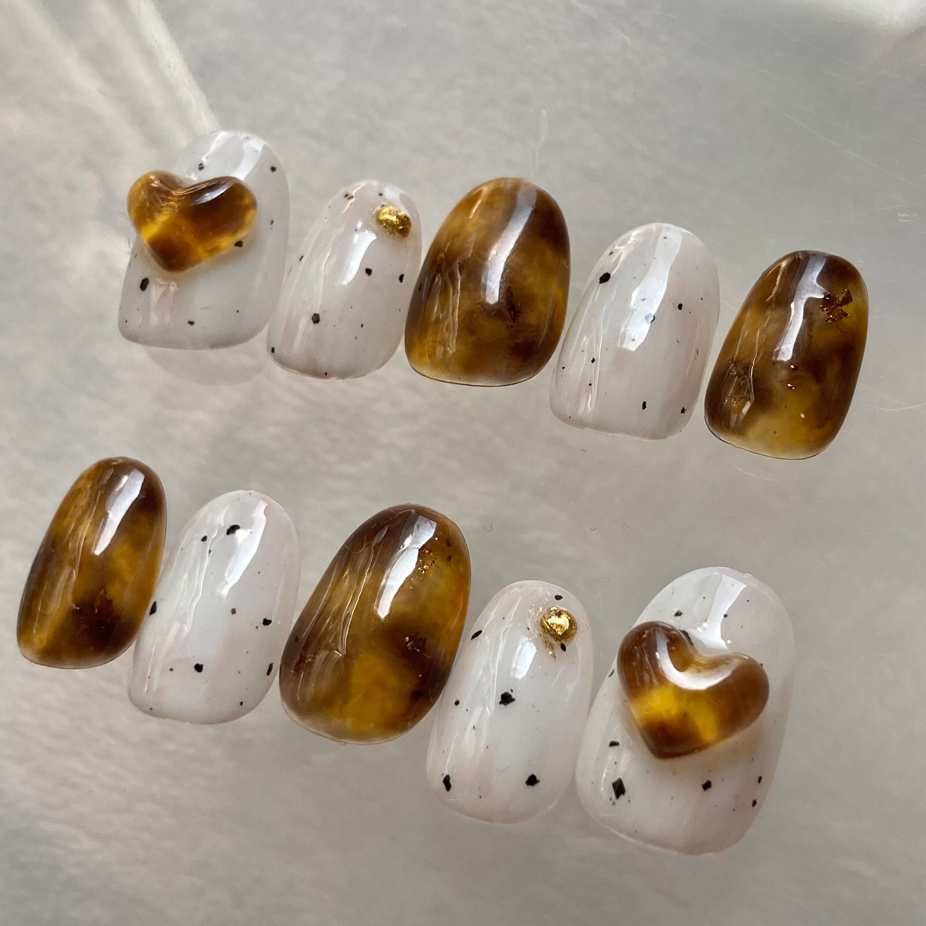 autumn mood|ニュアンスネイル ネイルチップ べっこうネイル うずらネイル 秋ネイル ブラウンネイル 淡色ネイル ハートネイル ぷっくりネイル 韓国ネイル