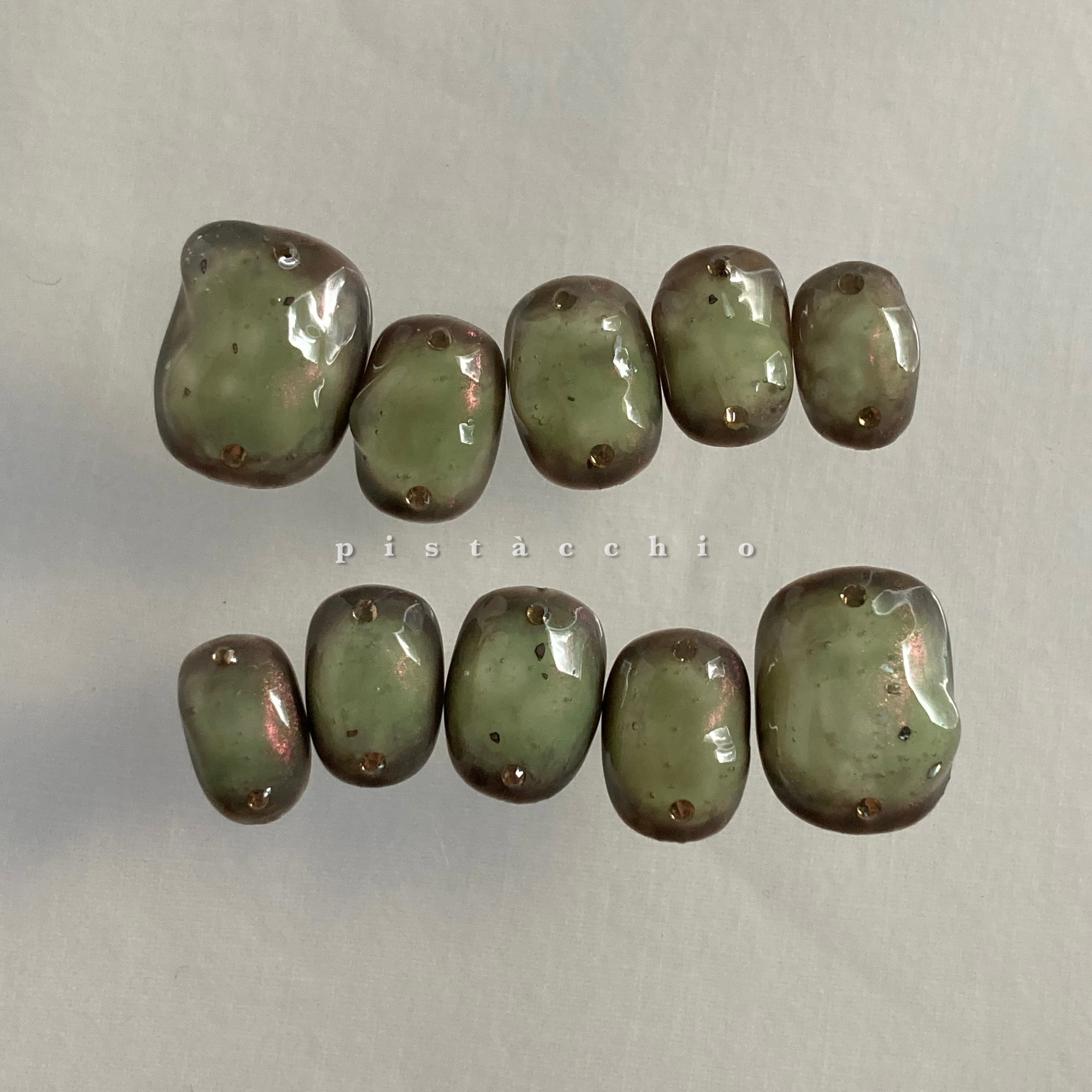 pistàcchio|ニュアンスネイル ネイルチップ グリーンネイル ブラウンネイル うるうるネイル 鉱物ネイル ぷっくりネイル