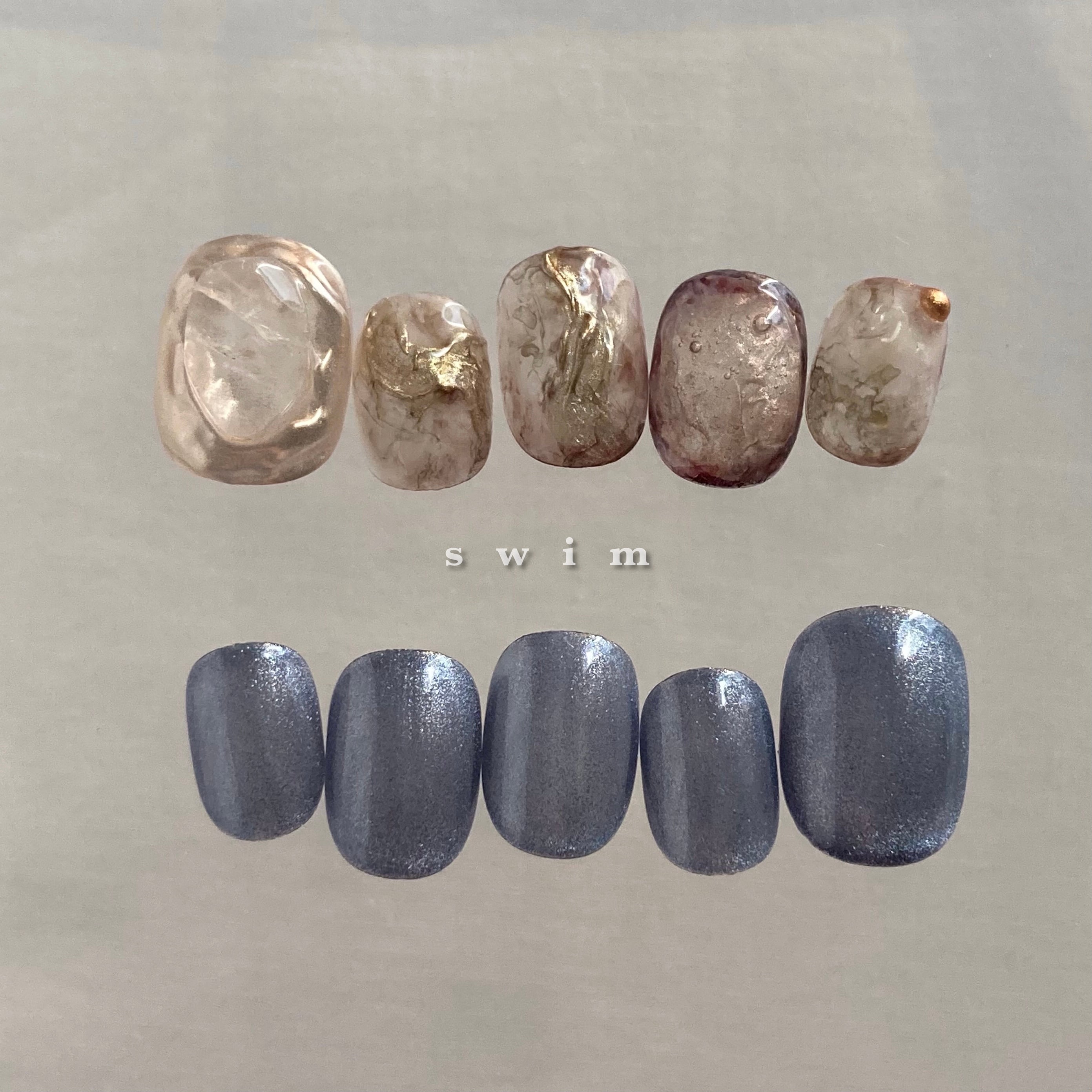 swim|ニュアンスネイル ネイルチップ 天然石ネイル マグネットネイル ブルーネイル ブラウンネイル 夏ネイル ぷっくりネイル 淡色ネイル インクネイル