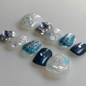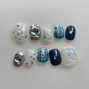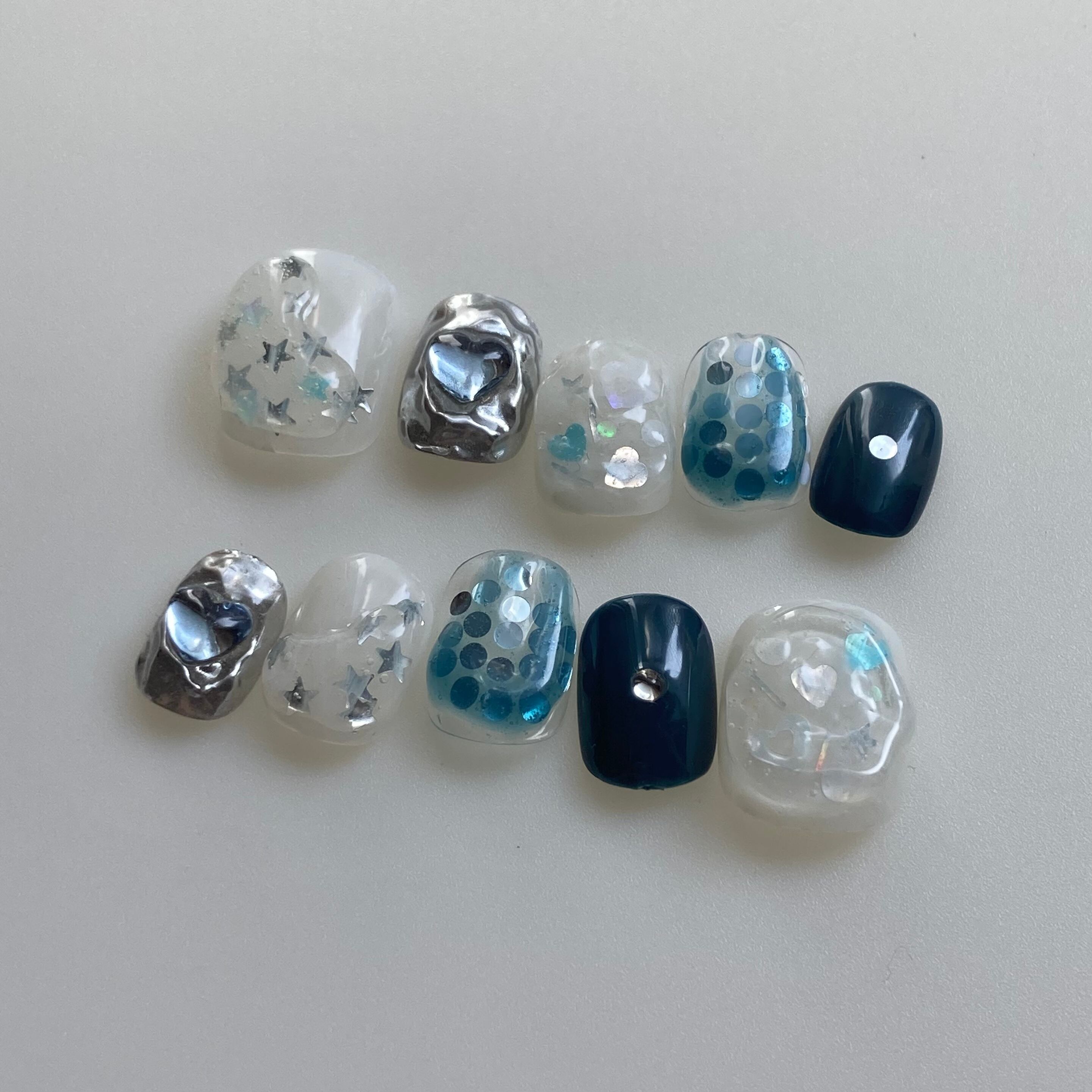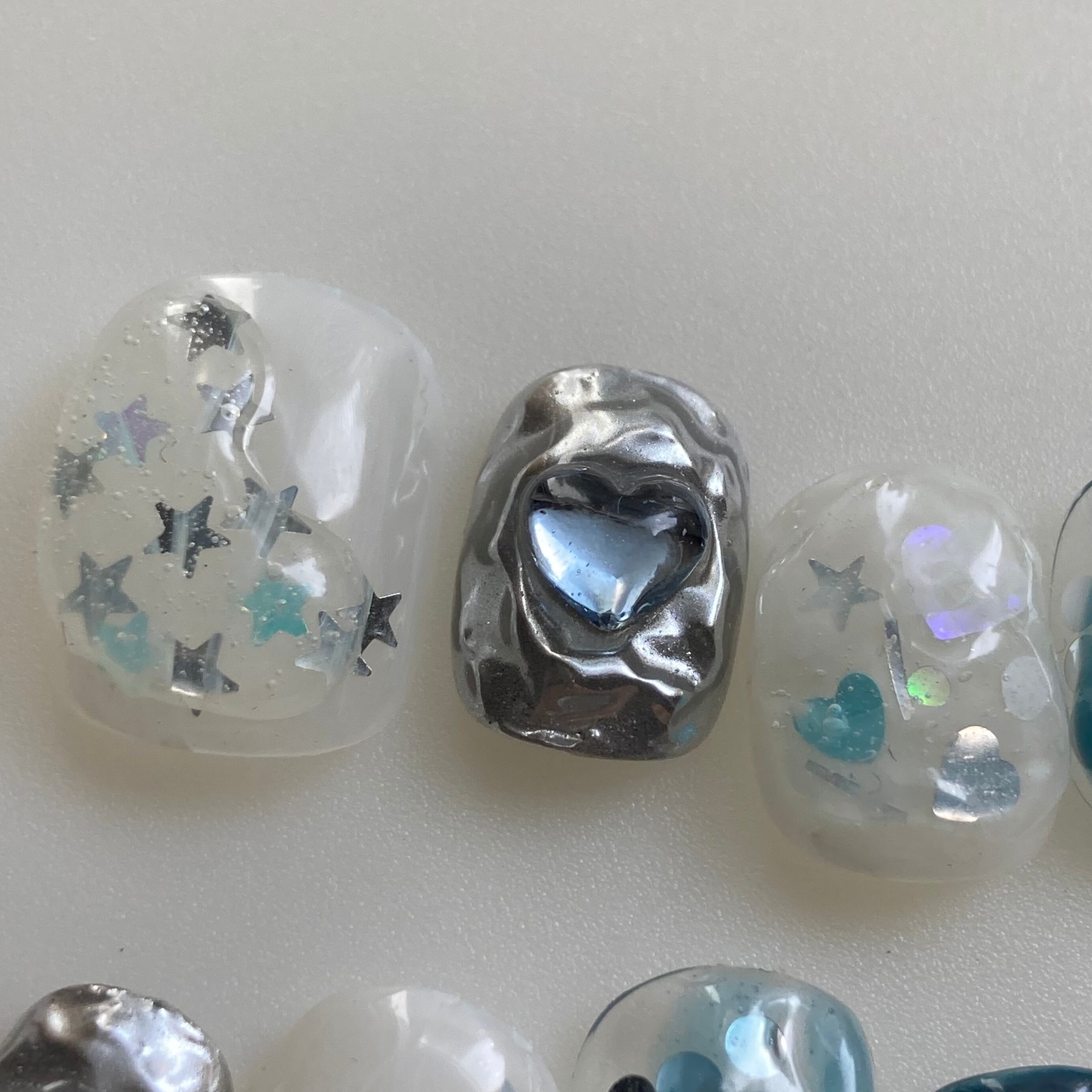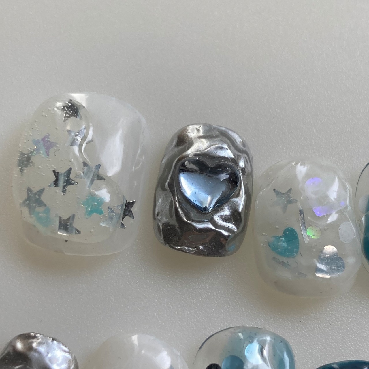 soda|韓国ネイル 韓国風ネイル ニュアンスネイル ブルーネイル シルバーネイル ぷっくりネイル ホロネイル ハートネイル