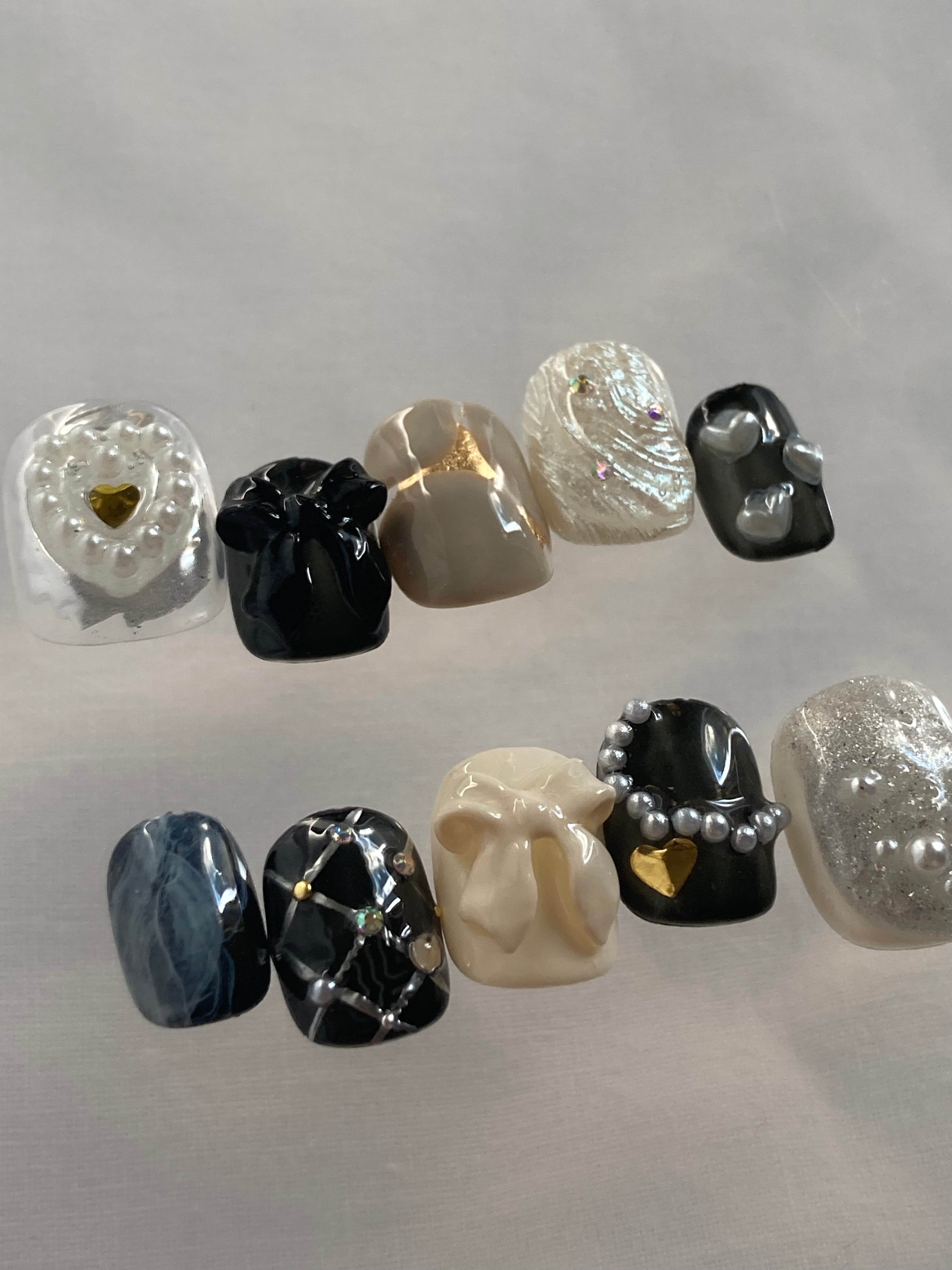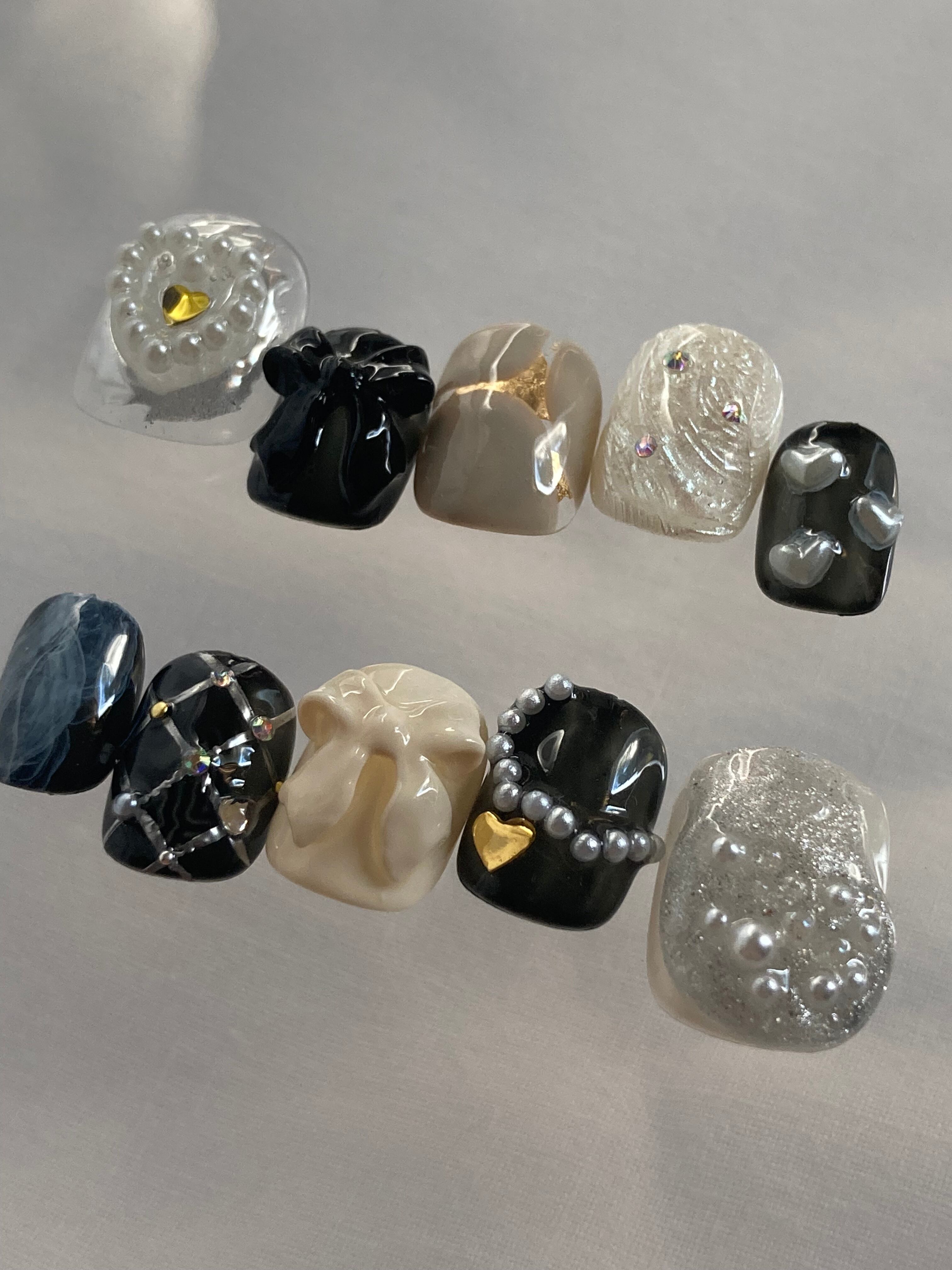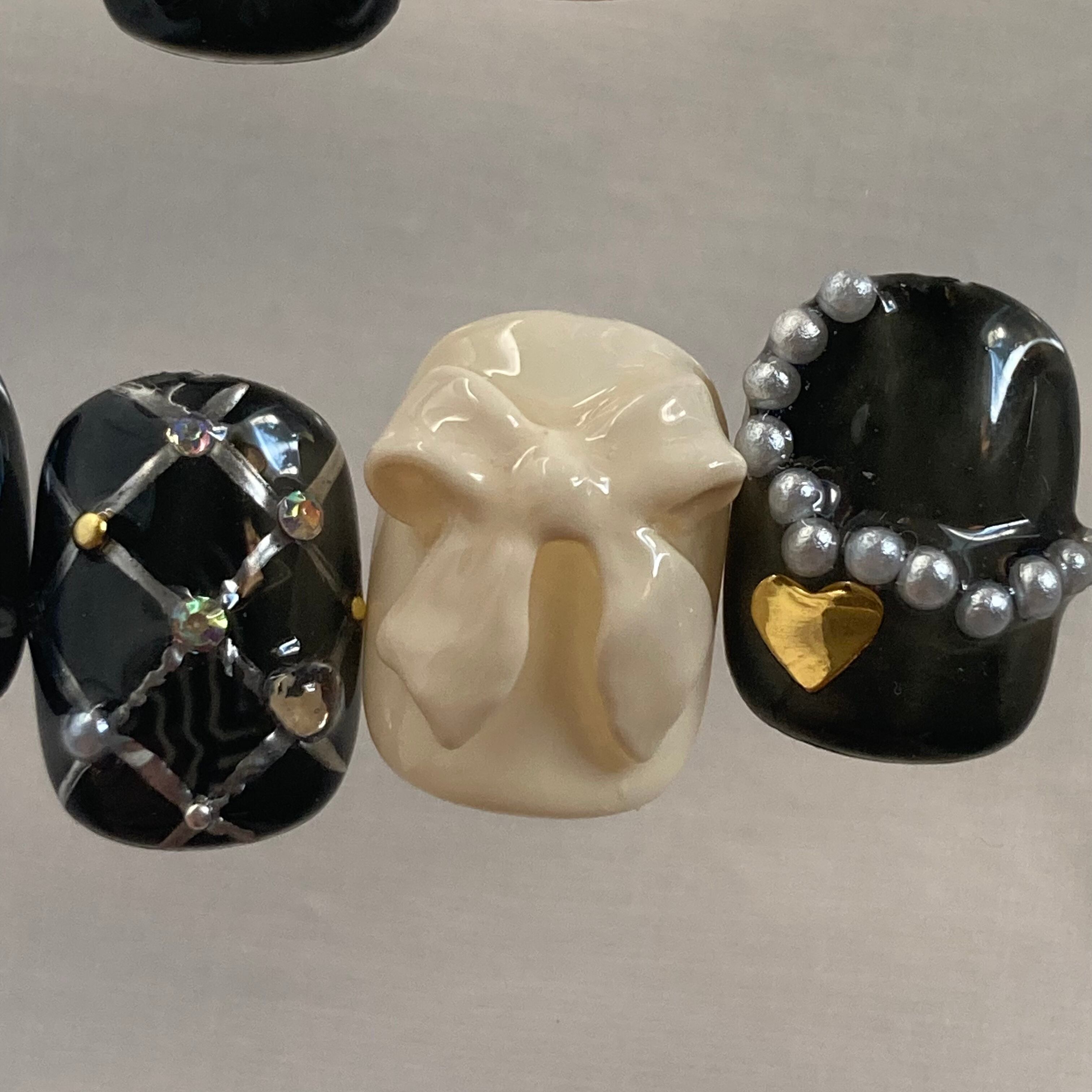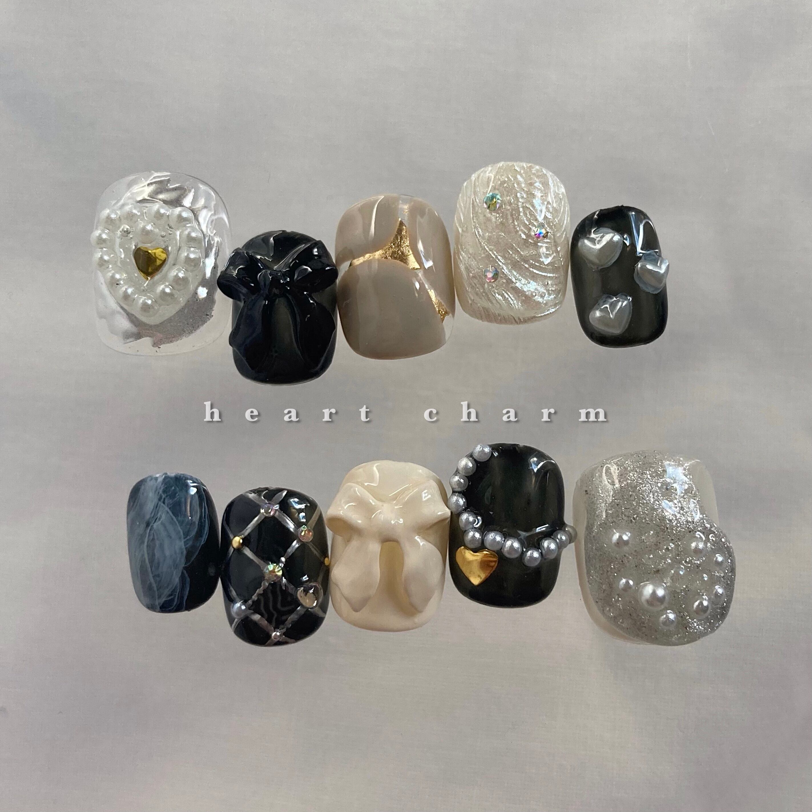 heart charm|ニュアンスネイル ネイルチップ 韓国ネイル 韓国風ネイル ハートネイル リボンネイル ぷっくりネイル シルバーネイル ブラックネイル インクネイル