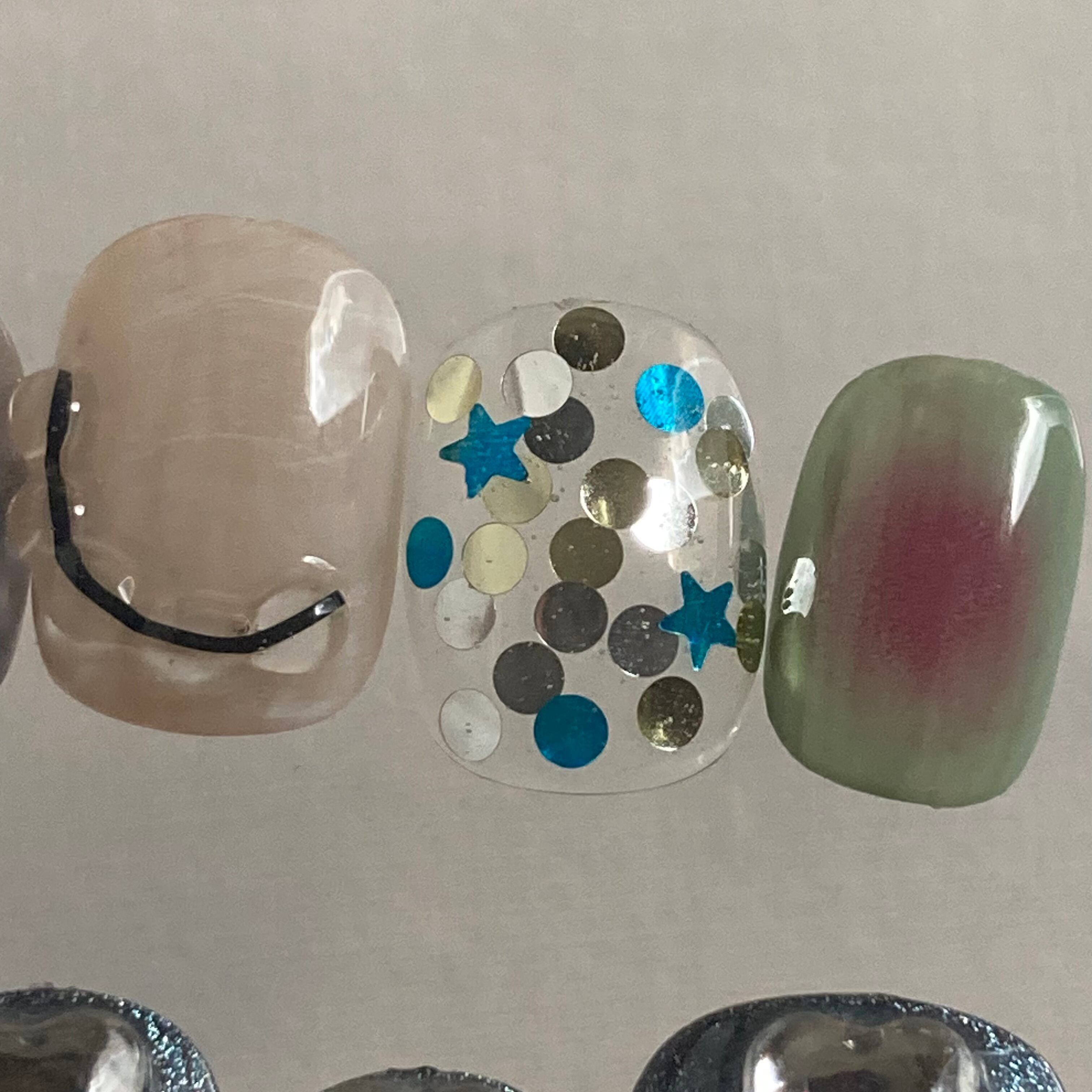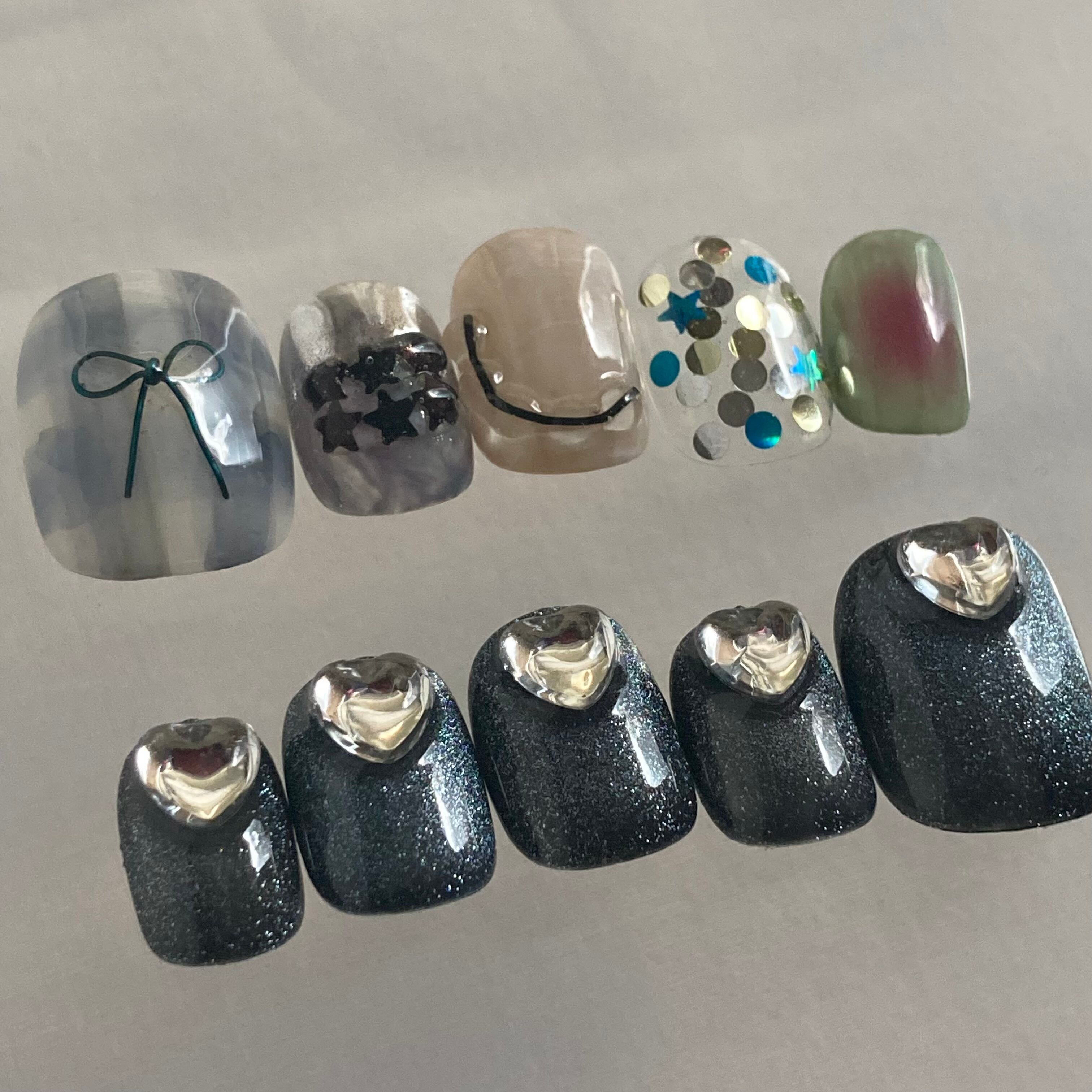 Monday|ニュアンスネイル ネイルチップ 韓国ネイル 韓国風ネイル ブルーネイル マグネットネイル リボンネイル ハートネイル チェックネイル グラデネイル ぷっくりネイル