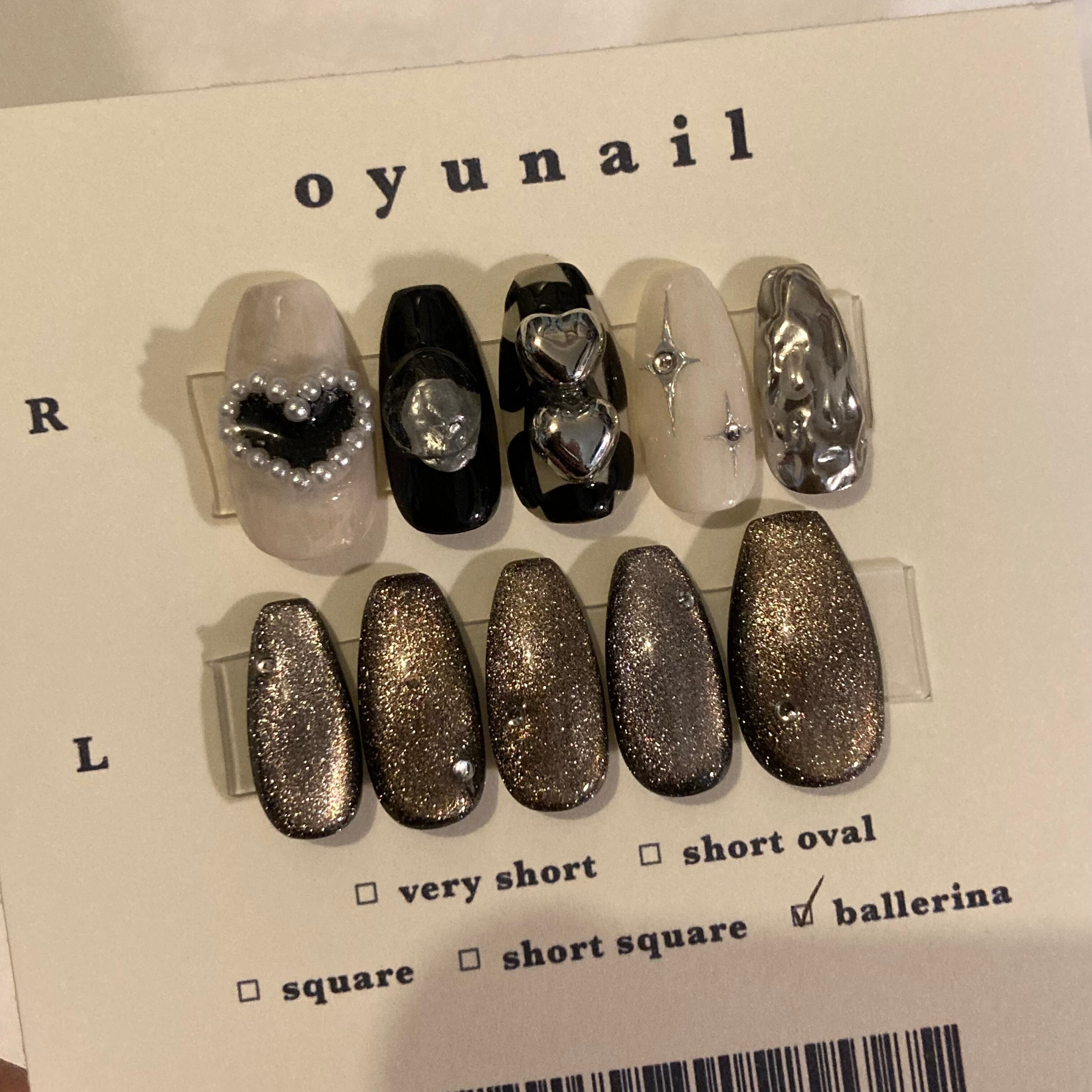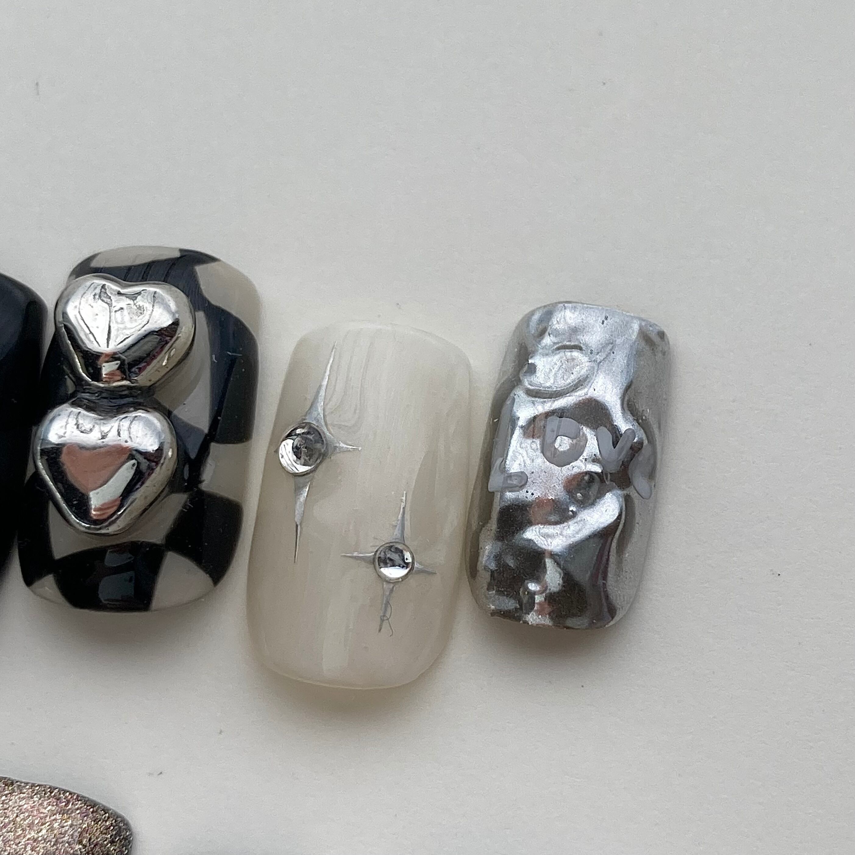 Saturn|ニュアンスネイル ネイルチップ 韓国ネイル 韓国風ネイル マグネットネイル モノトーンネイル ハートネイル シルバーネイル ぷっくりネイル y2kネイル