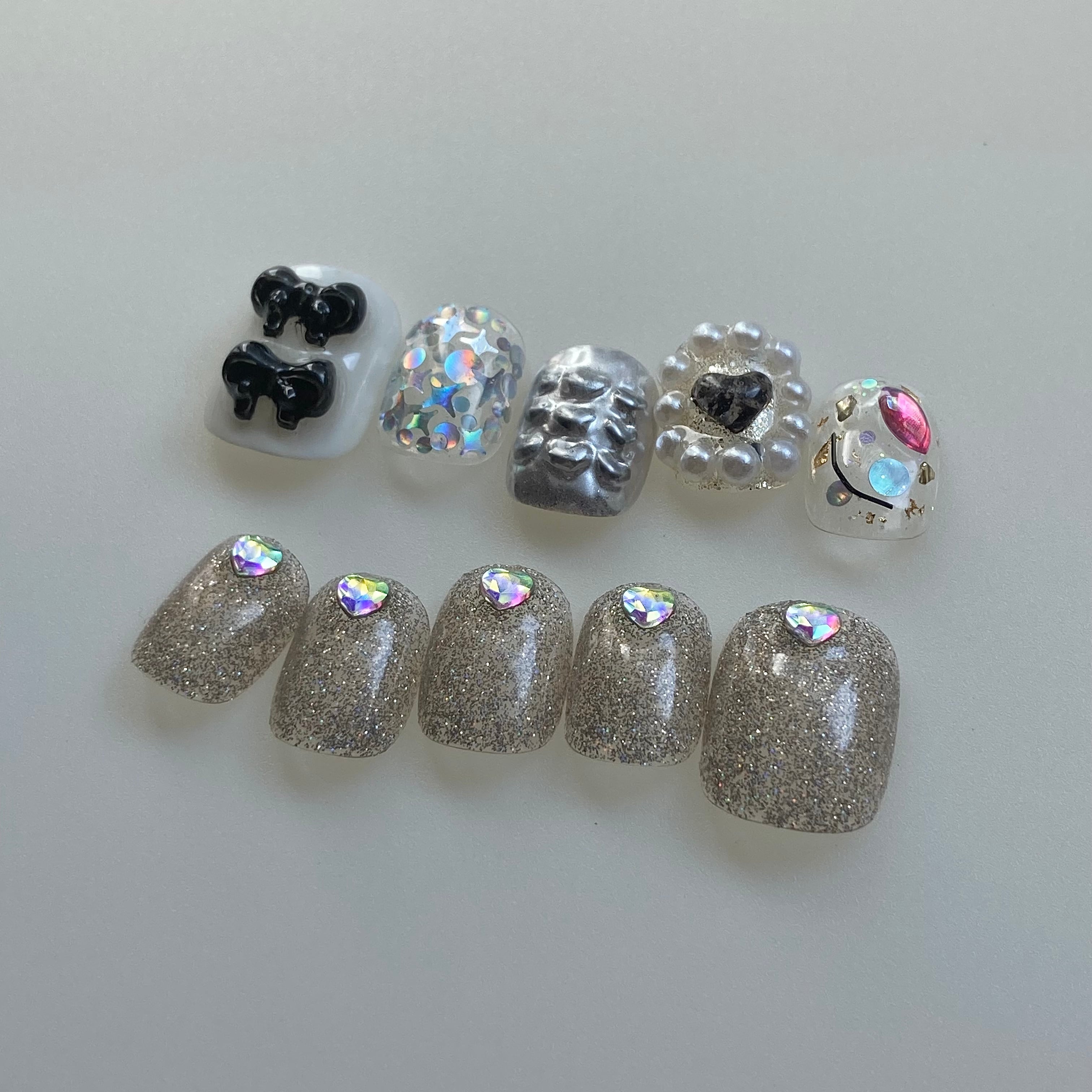 party|ニュアンスネイル ネイルチップ 韓国ネイル 秋冬ネイル ホロネイル シルバーネイル フラッシュネイル ぷっくりネイル リボンネイル ハートネイル