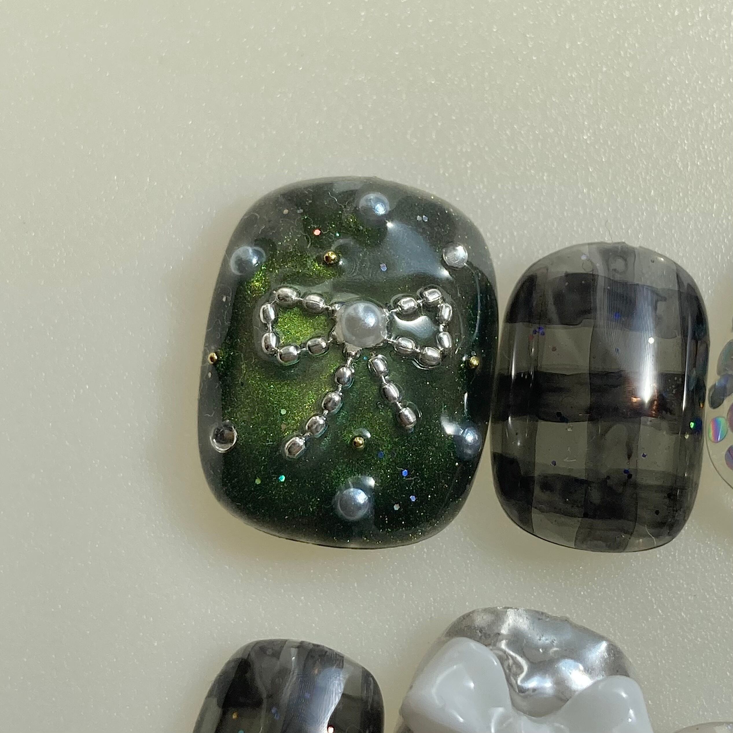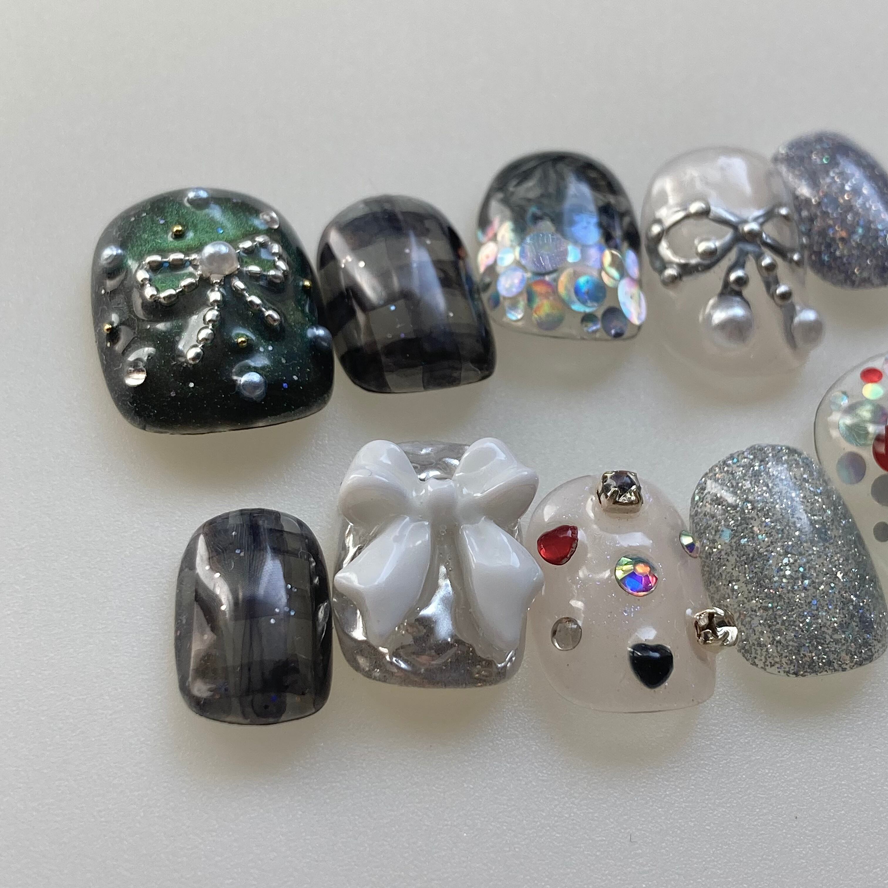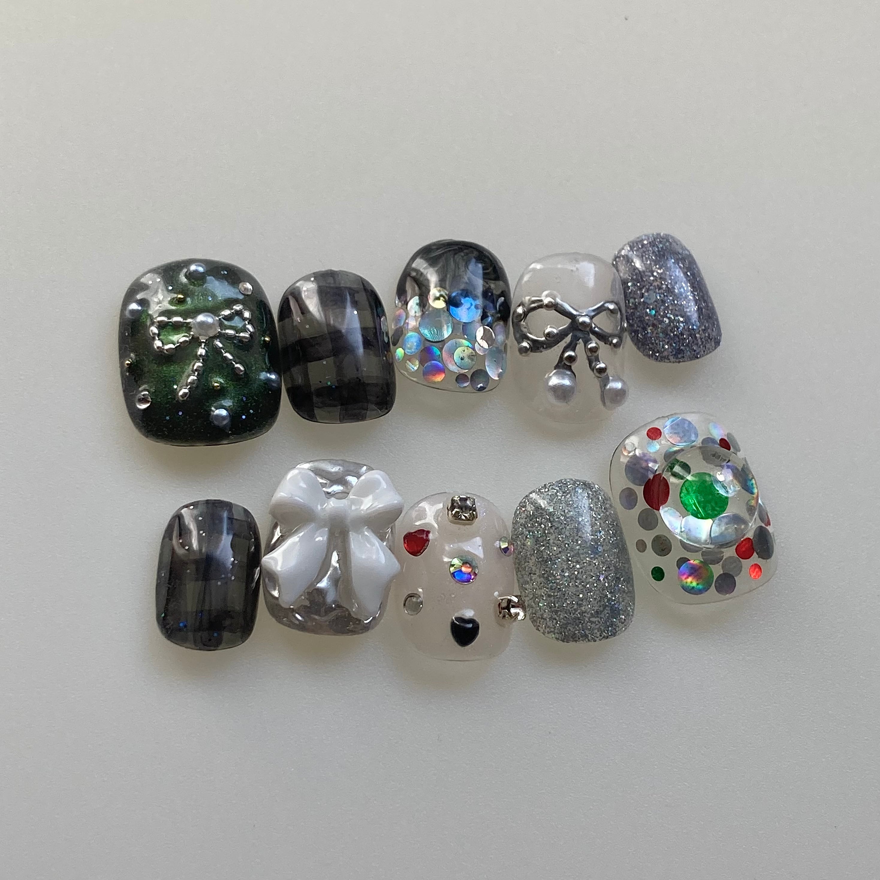 holiday|ニュアンスネイル ネイルチップ 韓国ネイル 韓国風ネイル クリスマスネイル 冬ネイル キラキラネイル ぷっくりネイル チェックネイル リボンネイル ハートネイル
