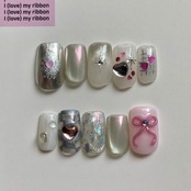 modest|ニュアンスネイル ネイルチップ 韓国ネイル 韓国風ネイル ピンクネイル シルバーネイル リボンネイル ハートネイル ぷっくりネイル マグネットネイル