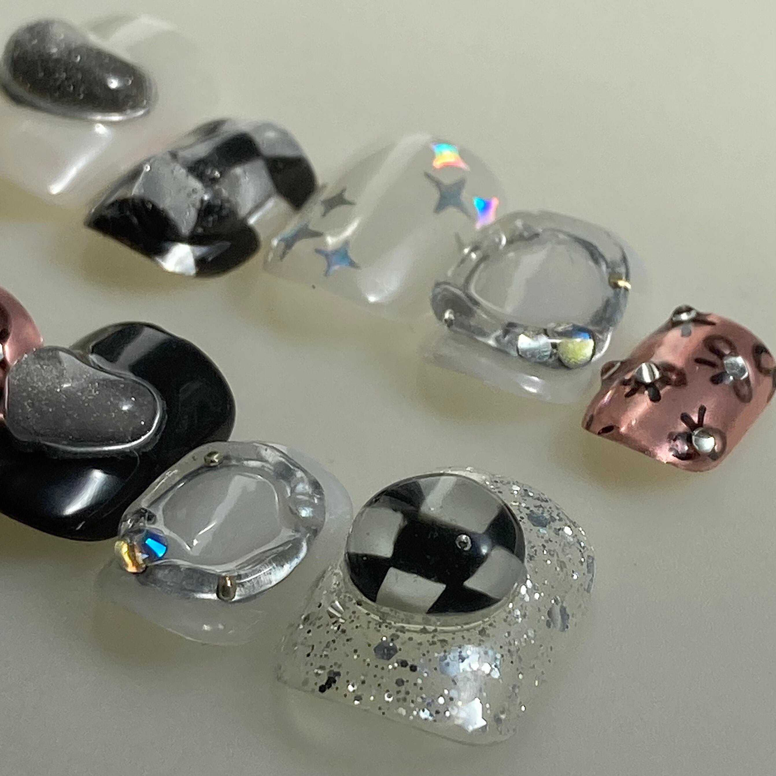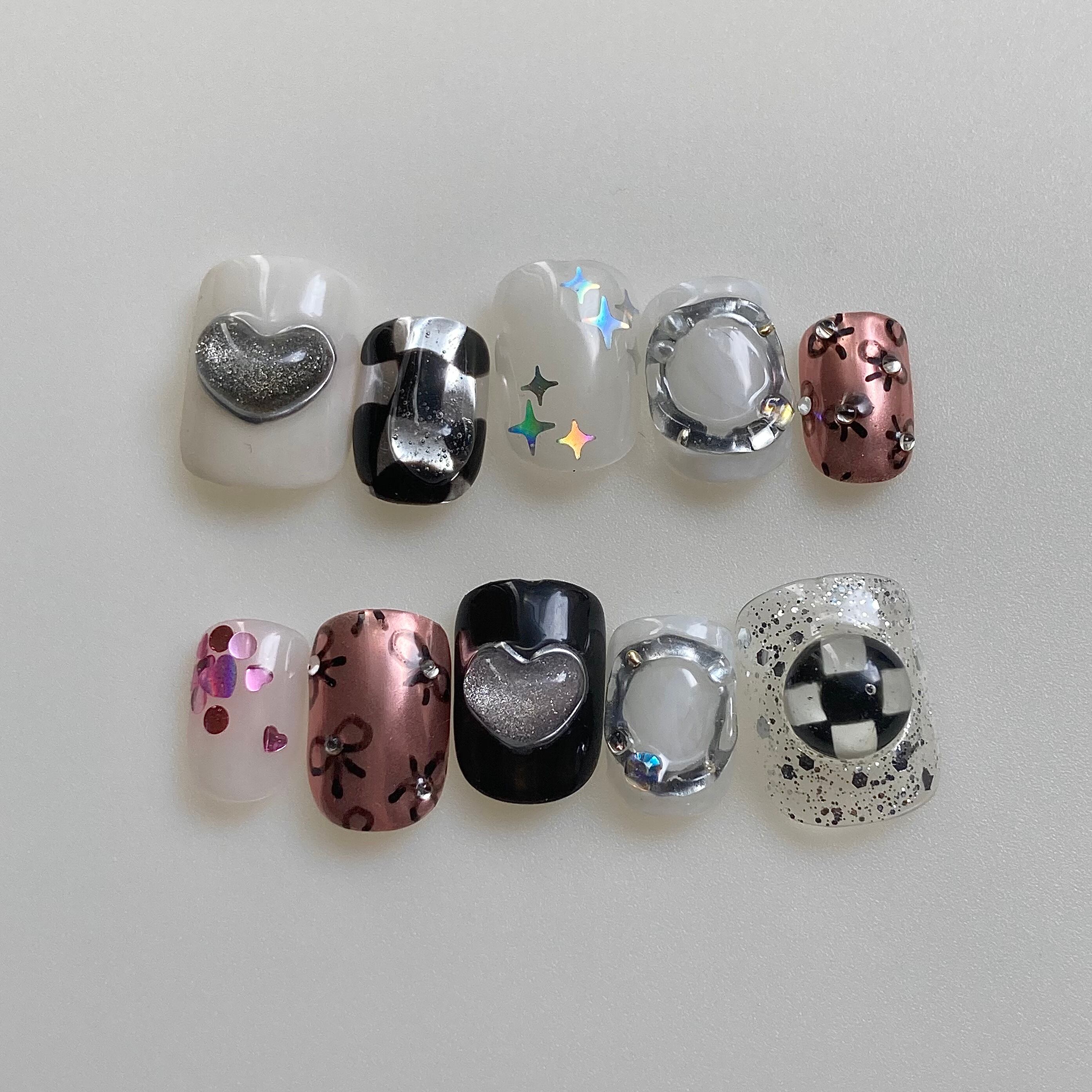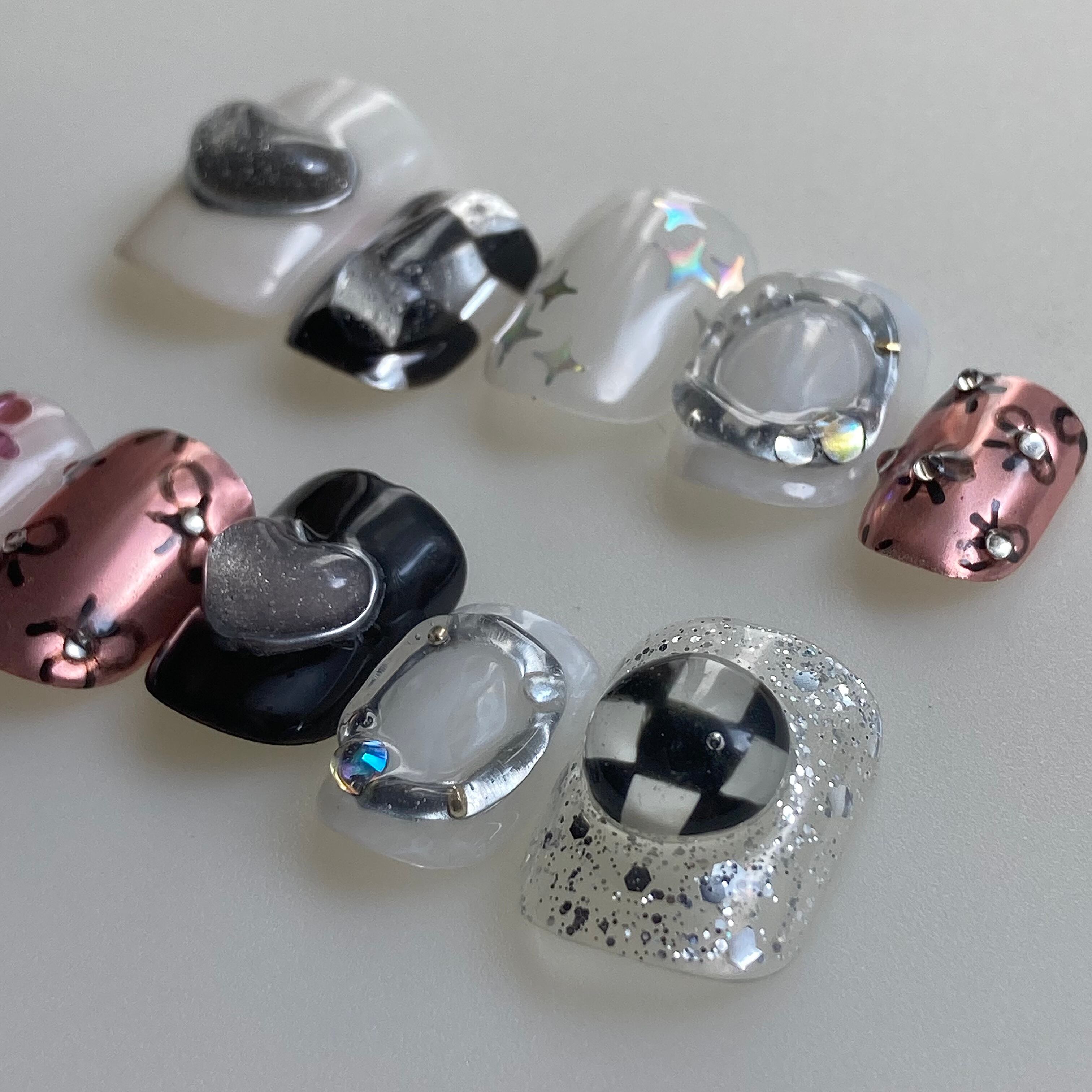 costume|韓国ネイル 韓国風ネイル ネイルチップ ニュアンスネイル ハートネイル ピンクネイル モノトーンネイル シルバーネイル ぷっくりネイル リボンネイル マグネットネイル y2kネイル