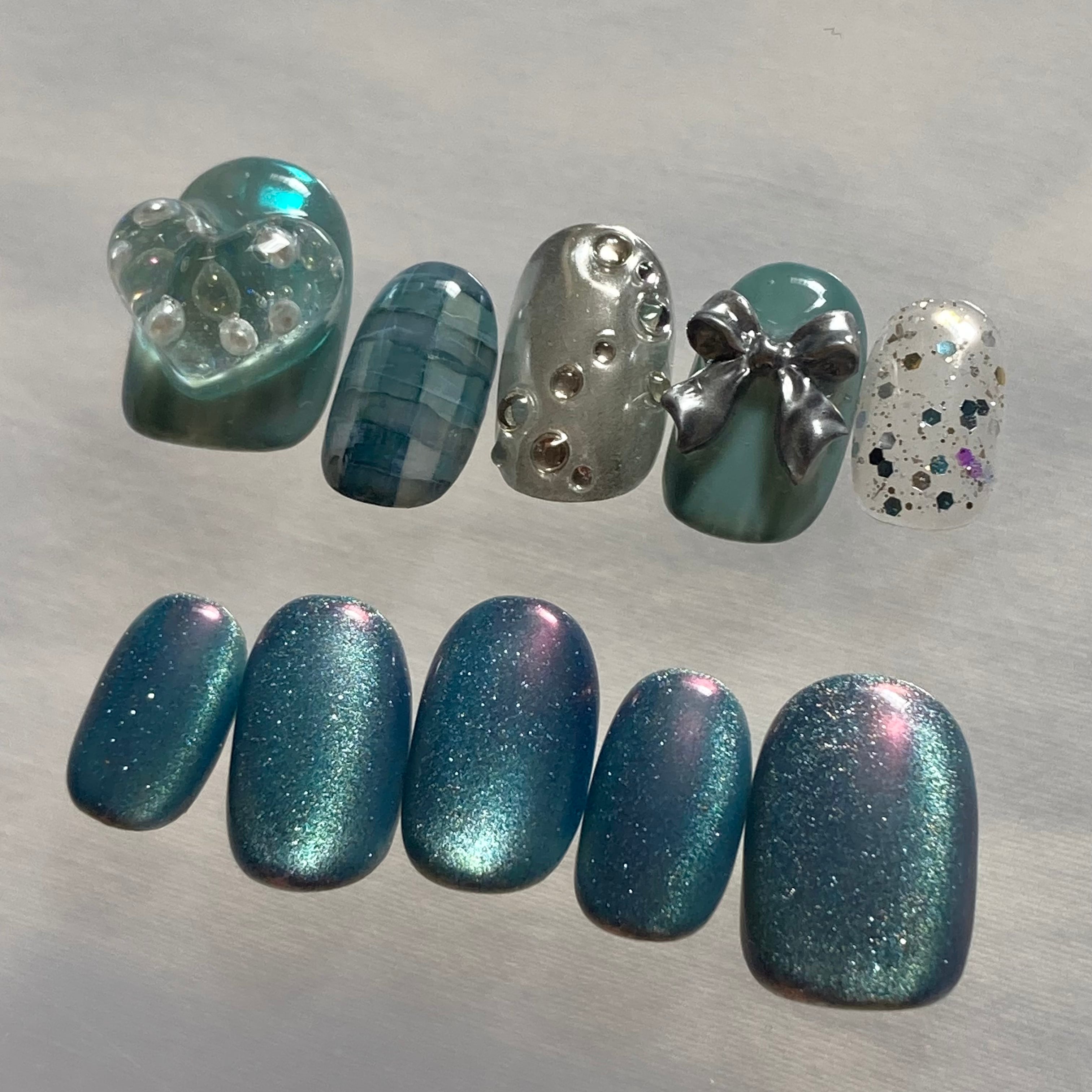 bubble|韓国ネイル 韓国風ネイル ネイルチップ ブルーネイル ニュアンスネイル マグネットネイル リボンネイル ハートネイル チェックネイル シルバーネイル ぷっくりネイル うるうるネイル