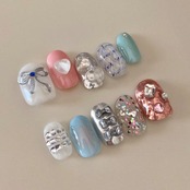 ネイルチップ 韓国風ネイル 韓国ネイル グラデーションネイル マーブルネイル マグネットネイル ホワイトネイル シルバーネイル シンプルネイル ニュアンスネイル ぷっくりネイル 鉱石ネイル インクネイル 淡色ネイル 春ネイル 結婚式ネイル ブライダルネイル ウエディングネイル 成人式ネイル リボンネイル Y2Kネイル