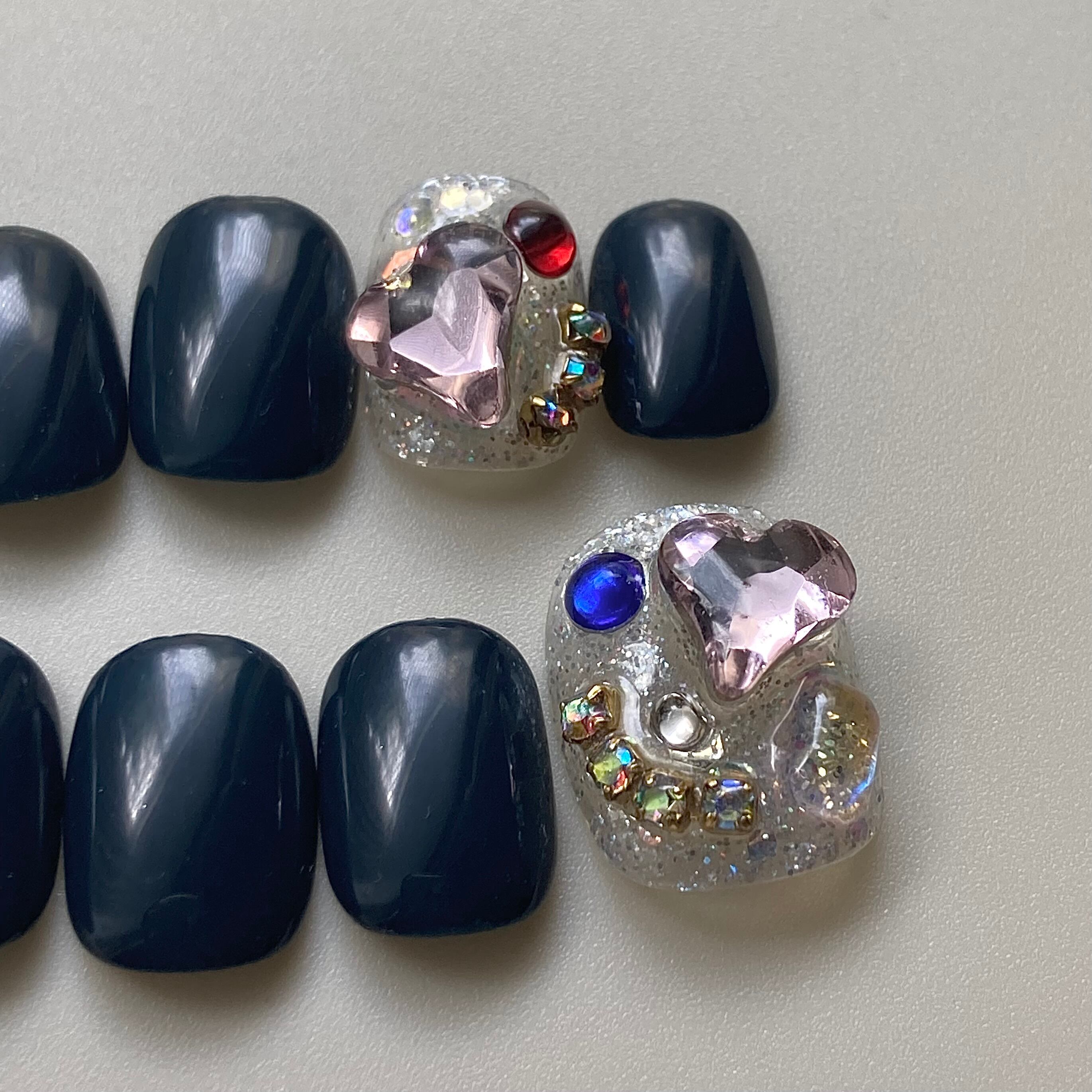 midnight|韓国ネイル 韓国風ネイル ネイルチップ ニュアンスネイル ビジューネイル ネイビーネイル シンプルネイル ハートネイル
